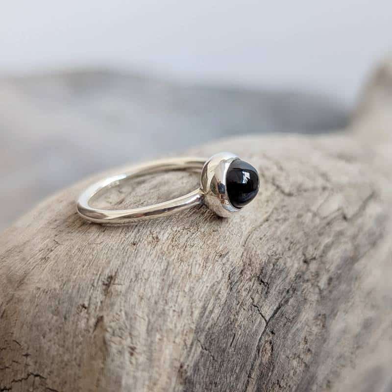 La bague argent et saphir noir est une création intemporelle. La pierre fine est un saphir indien aussi appelé black star. Cette pierre naturelle offre des reflets lumineux, qui changent au grès de la lumière et de votre mouvement.