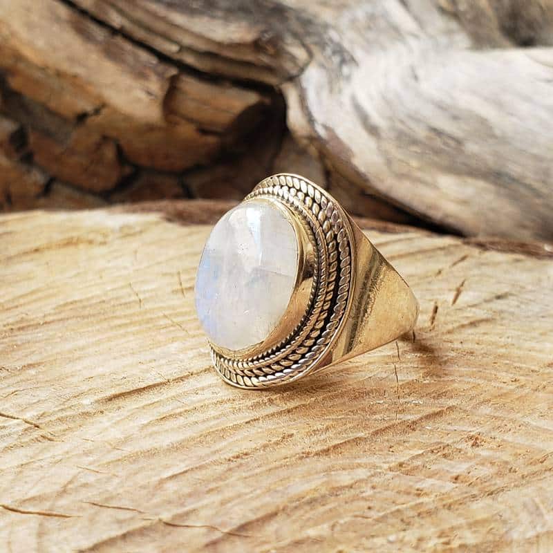 La bague pierre de lune argent est une pièce unique. Un design magnifique aux lignes épurées, avec une jolie pierre fine ronde, aux reflets bleutés. Cette bague a été créée avec Soni, un de nos artisans-partenaires indien et fabriquée entièrement à la main. La pierre de lune vient essentiellement d’Inde, du Brésil, des USA et d’Australie. Les pierres de lunes des bijoux Omyoki viennent d’Inde.