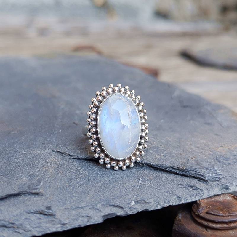 Argent 925, le matériau de votre bague pierre de lune véritable BAROQUE