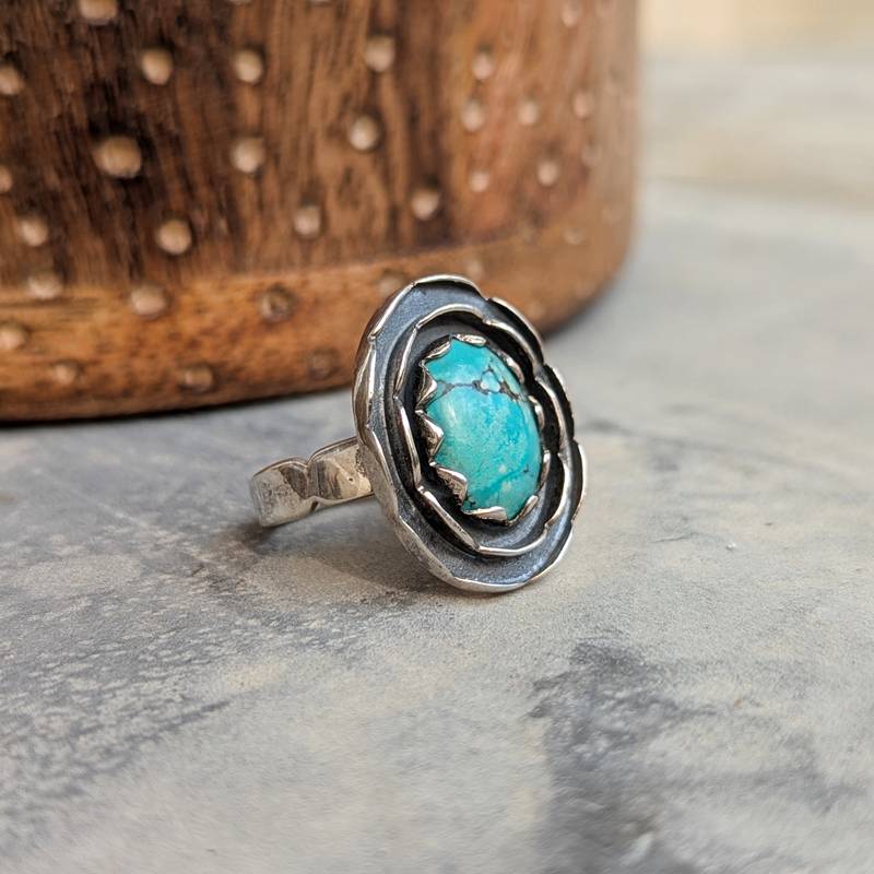 La bague turquoise argent BOHÈME est une pièce unique, entièrement fait-main. Cette bague au design ethnique chic, s’inspire des bijoux traditionnels indiens.