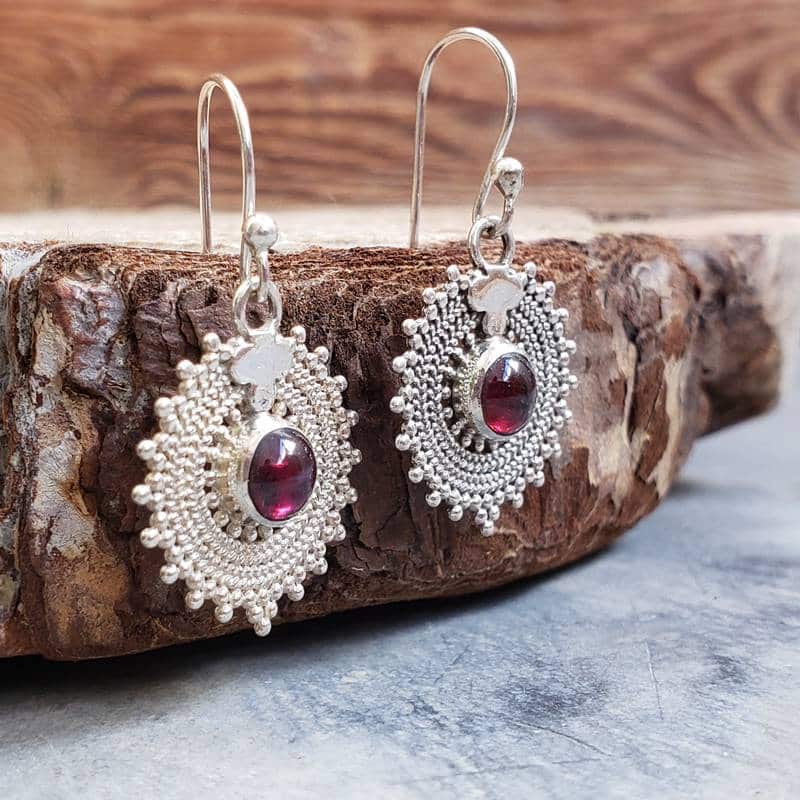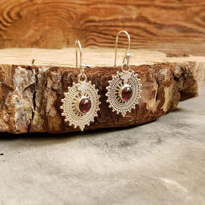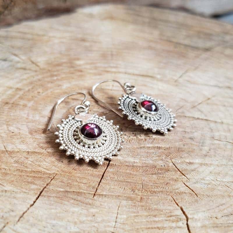 Caractéristiques des boucles d’oreilles MANDALA en argent et grenat