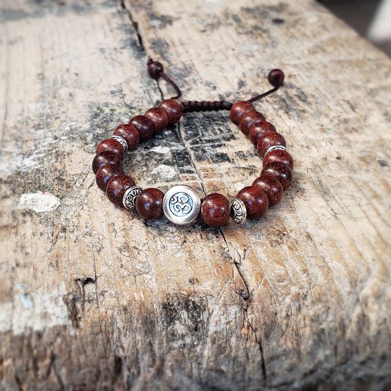 Le bracelet en bois de rose OM est un bijou fait-main au Népal. Ce bois exotique, aussi appelé Sheesham, est très en vogue, avec ses tons chauds et doux. Le Om qui orne le centre du bracelet est un symbole bouddhiste. C’est la syllabe qui représente le son originel, à partir duquel l’Univers se serait structuré.