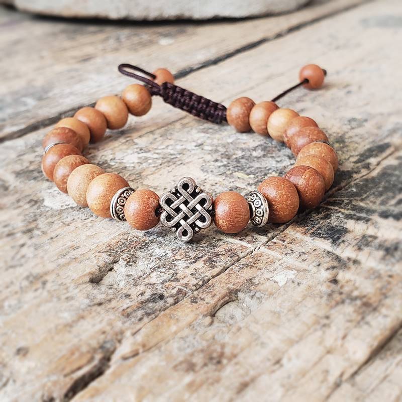 Le bracelet tibétain porte bonheur est un bijou d’aromathérapie, aux vertus bienfaisantes. Les perles en bois de santal offrent un effet relaxant grâce à leur odeur boisée. Vous pouvez aussi y déposer des huiles essentielles pour profiter de leurs propriétés tout au long de la journée. Le nœud central est aussi appelé nœud de la chance ou nœud de l’infini. C’est un des huit symboles de bonne augure bouddhiste.