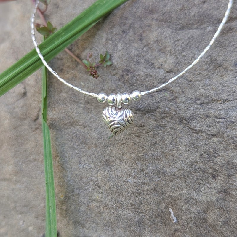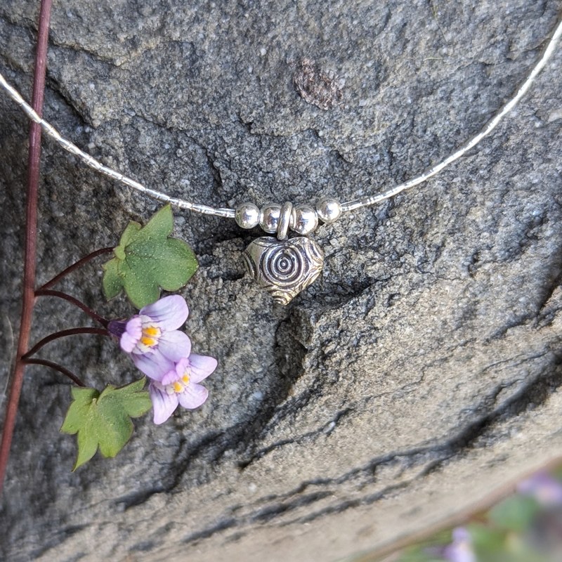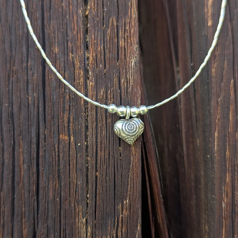 Le collier argent artisanal COEUR est un bijou fin, très gracieux. Il viendra orner votre cou et lui apporter tout son charme. Cette création artisanale est composée de tubes d’argent massif, enfilés sur un câble en acier. Le petit cœur est lui aussi en argent massif, creux et délicatement gravé. Les deux faces du cœur ont des motifs différents et vous ne vous en lasserez jamais.