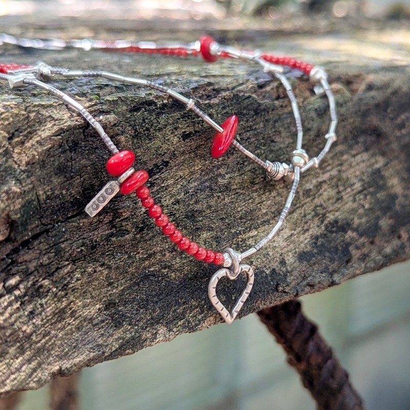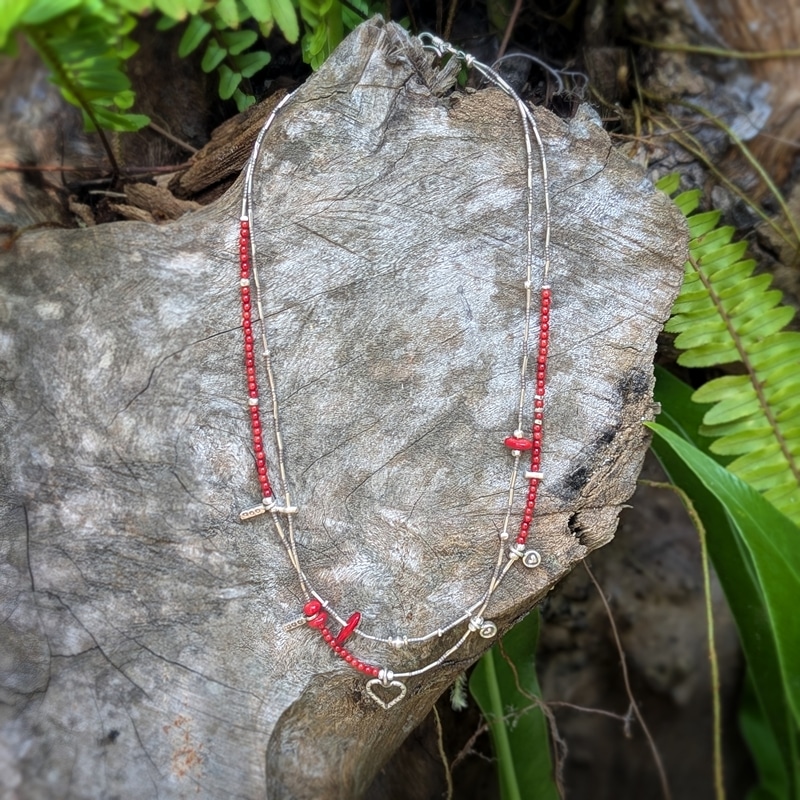 Le collier en corail rouge et argent est une fabuleuse pièce unique. Ce magnifique collier vient de l’inspiration d’une thaïlandaise, une française et une japonaise. Lors de notre dernier voyage de création en Thaïlande, une rencontre inattendue a donné naissance à ce bijou artisanal. Composé de corail rouge naturel, de formes et de tailles variées, il est agrémenté de quelques pendentifs et charms an argent massif. Les tubes d’argent et les apprêts sont eux aussi variés et tailles et formes.