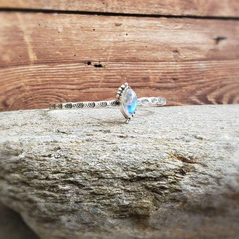- Dimensions de la pierre de lune : 14 x 7 mm