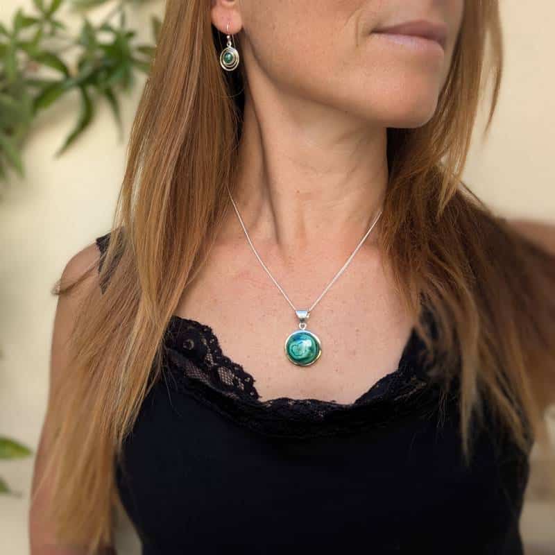 Le pendentif argent et malachite NATURE est une pièce unique. La pierre naturelle offre des verts intenses avec des cercles et des courbes plus foncées. Ce pendentif aux couleurs nature a été créé en collaboration avec un de nos artisan-partenaire du Rajasthan, en Inde.