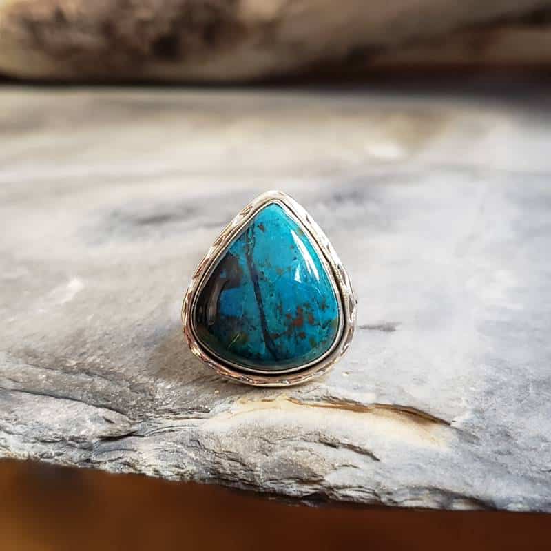 Argent 925, le matériau de la bague en chrysocolle argent ajustable