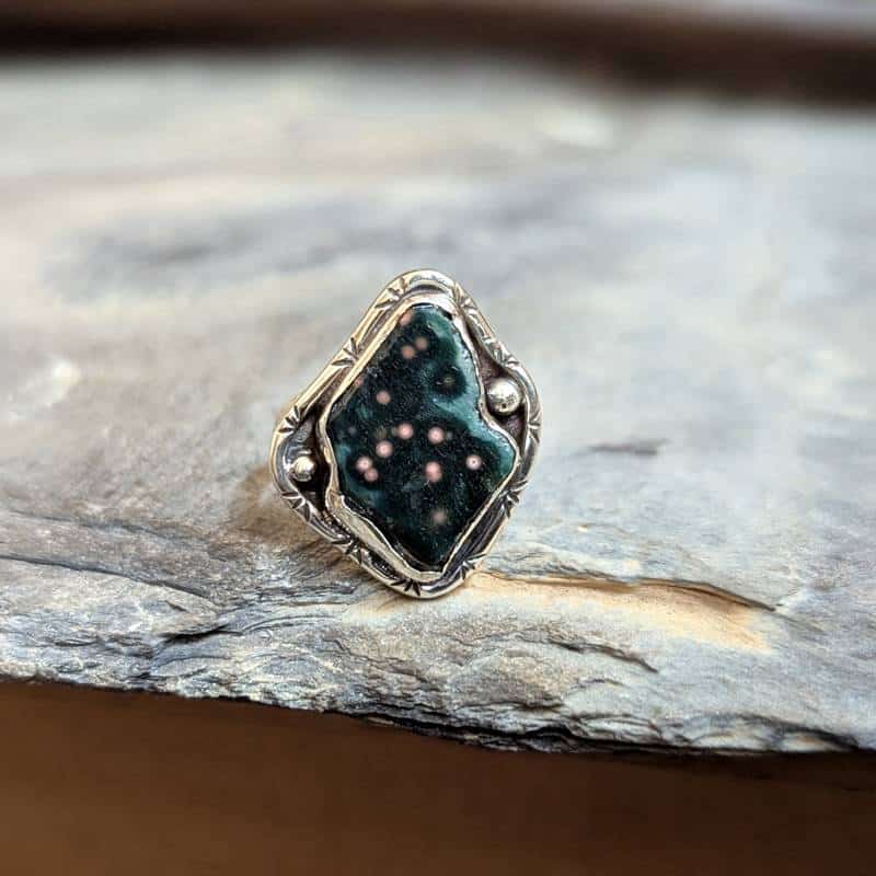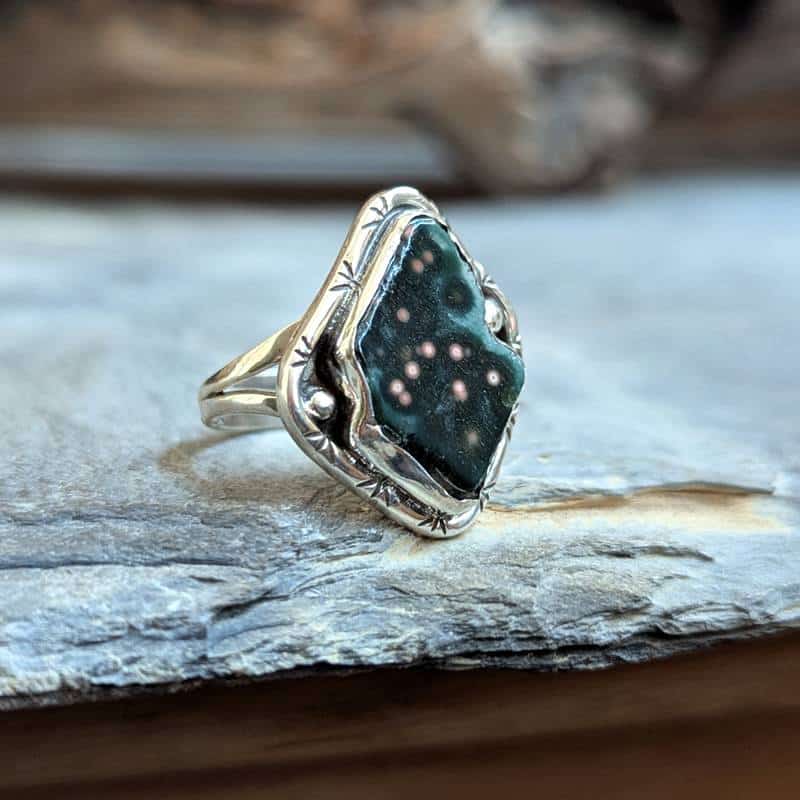 Caractéristiques de la bague en jaspe orbiculaire argent