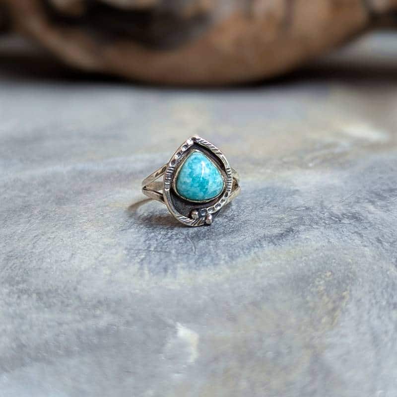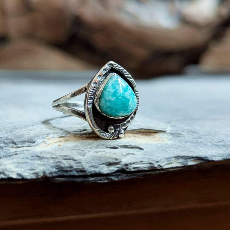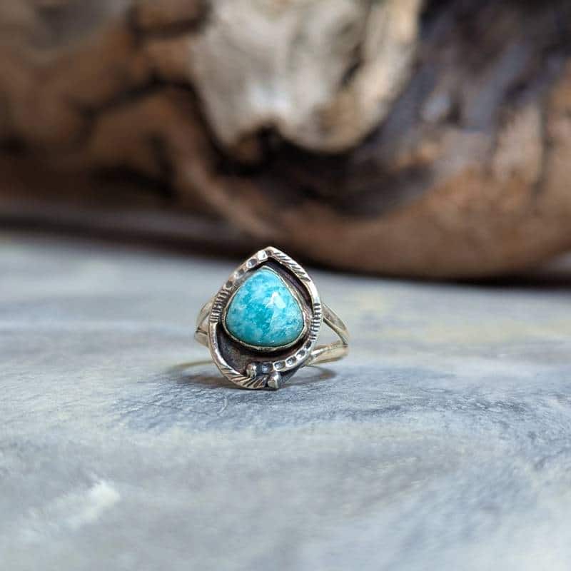 Caractéristiques de la bague ethnique amazonite argent ajustable COEUR