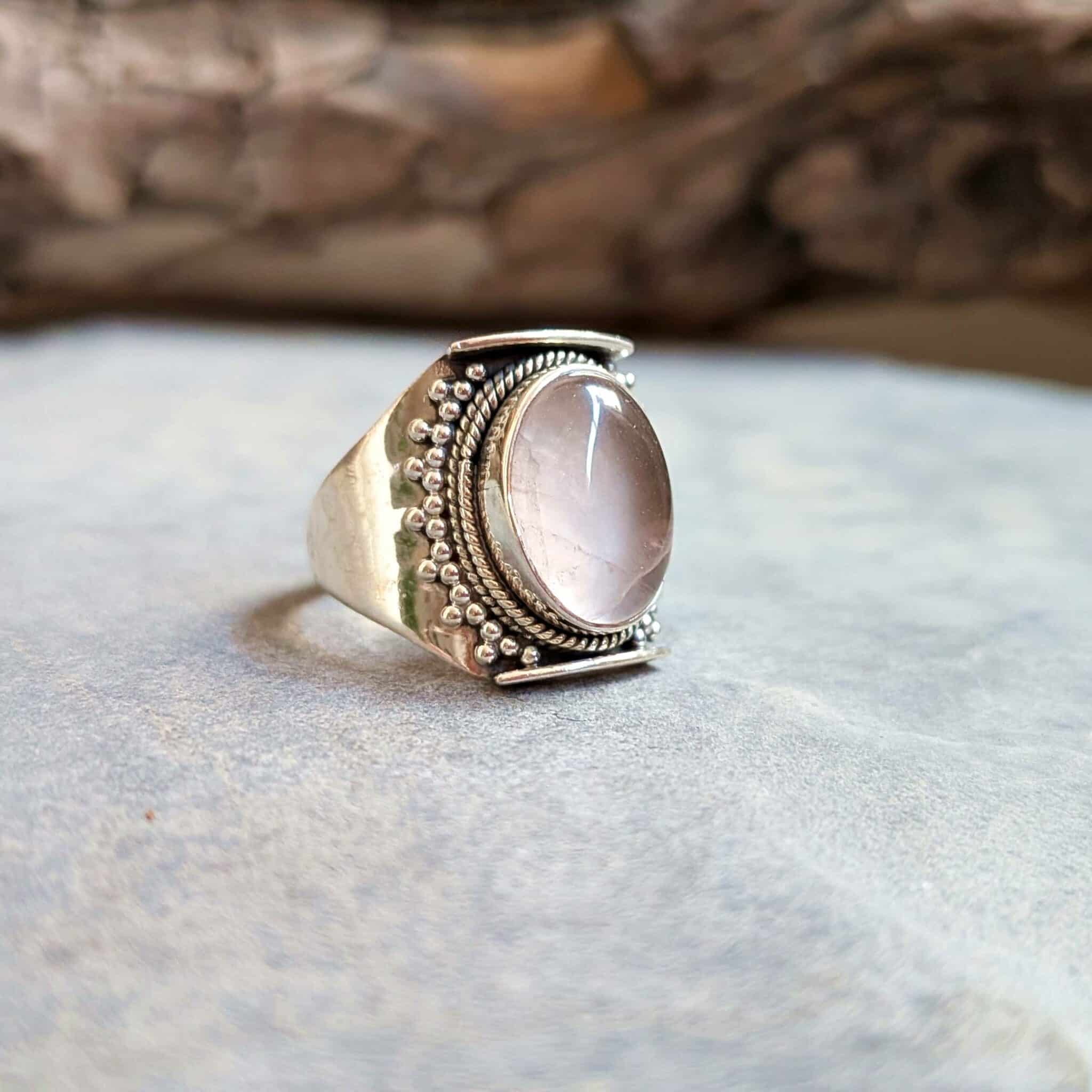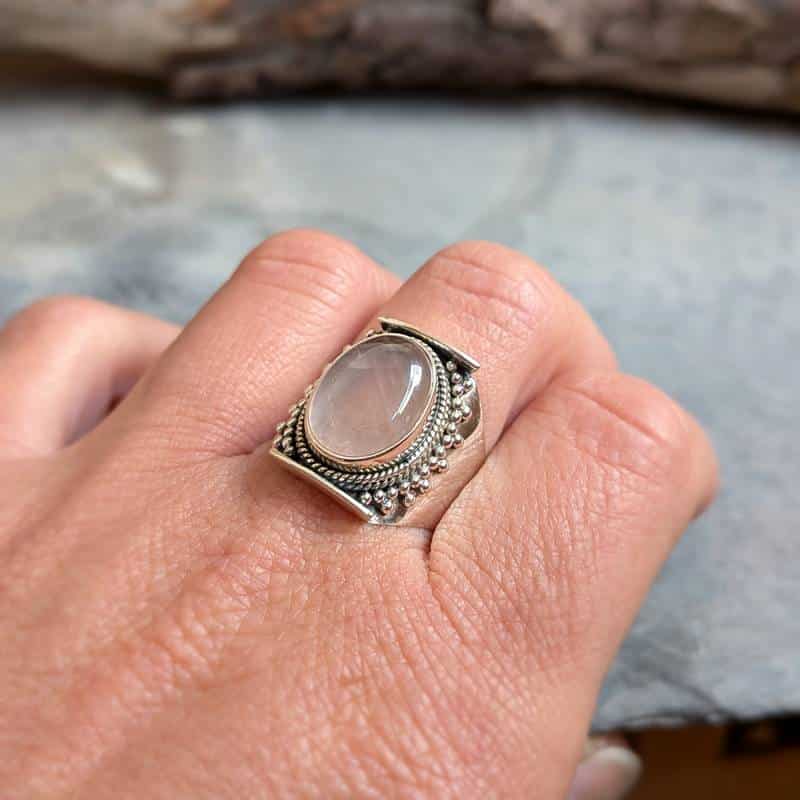 Caractéristiques de la bague ethnique quartz rose argent DOUCEUR