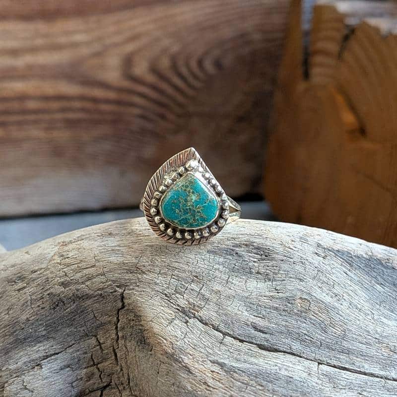 Bague ethnique turquoise argent ajustable PAON