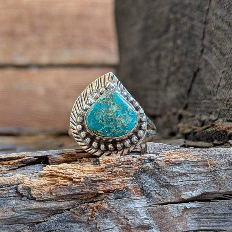 Le matériau de la bague ethnique turquoise argent ajustable PAON