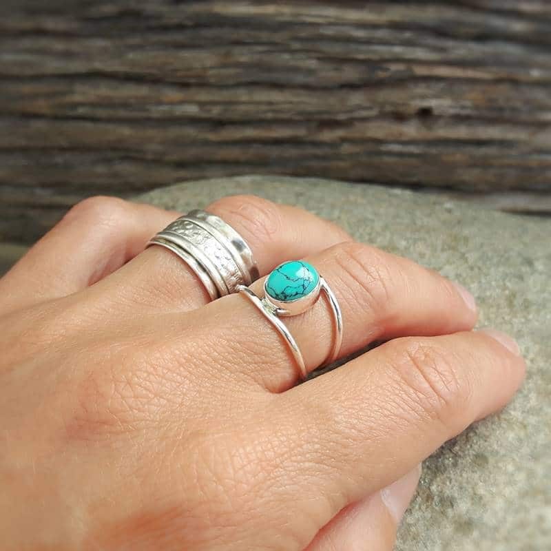 Une bague fine en turquoise au design très féminin et aéré. Ce modèle épuré sort de l’ordinaire et plaira follement aux femmes aimant les bijoux délicats. La turquoise est une pierre naturelle, au bleu clair. Cette bague a été entièrement fait-main par un artisan de talent du Rajasthan, terre de bijoutiers depuis des millénaires. C’est avec Soni que nous avons conçu cette bague.