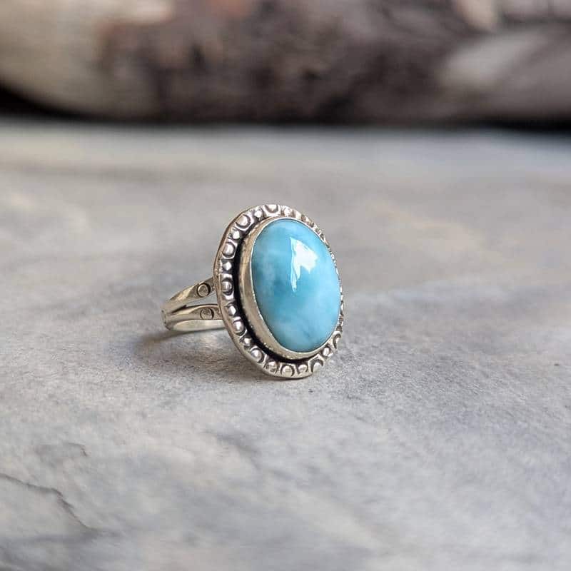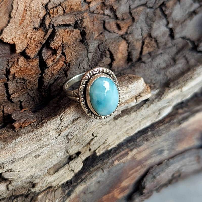 La bague larimar argent OCEAN est une superbe pièce unique. En plus d’être unique cette bague offre une pierre fine rare et exotique. En effet, elle vient tout droit des caraïbes et sa couleur rappelle les lagons bleus des îles.