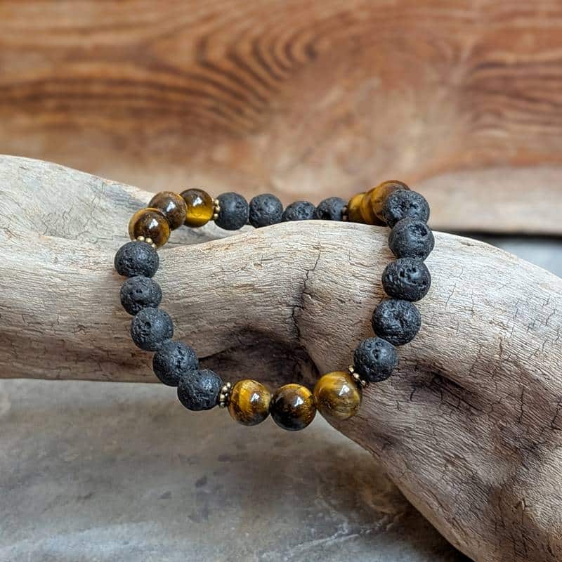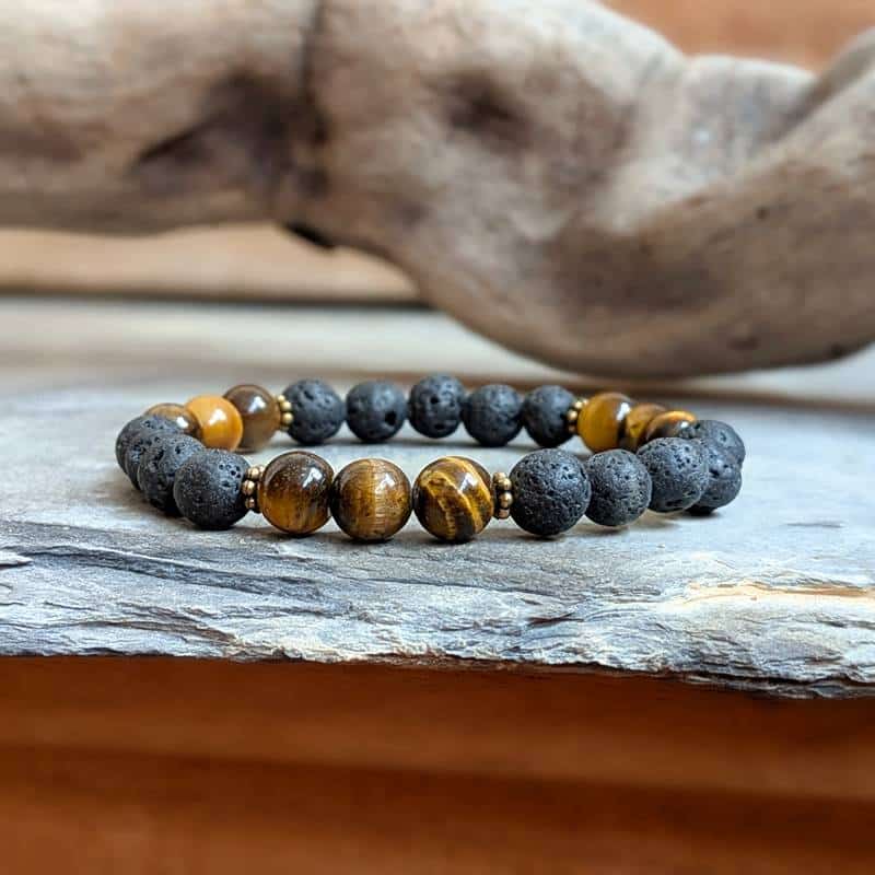 - 14 perles de lave de 7 à 8 mm et 9 perles d’oeil de tigre