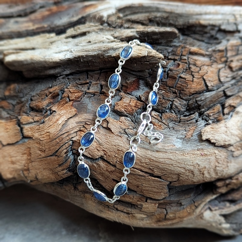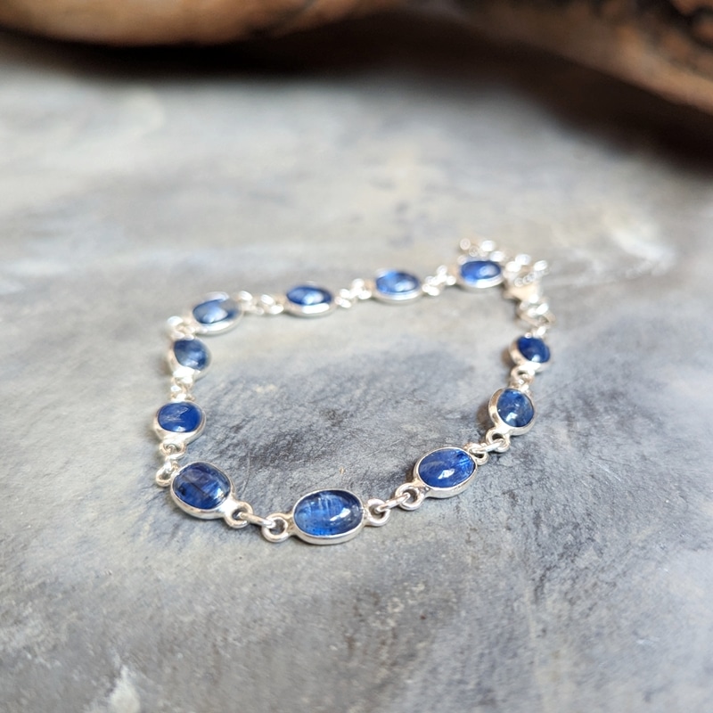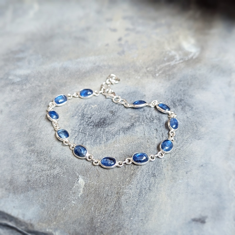 Un bracelet kyanite argent réglable aux couleurs fabuleuses! Les pierres naturelles de kyanite offrent des tons bleus chauds incroyables. Elles ont été serties avec délicatesse dans un argent 925 de qualité. Ajustable, ce bracelet convient aux poignets fins à moyens.