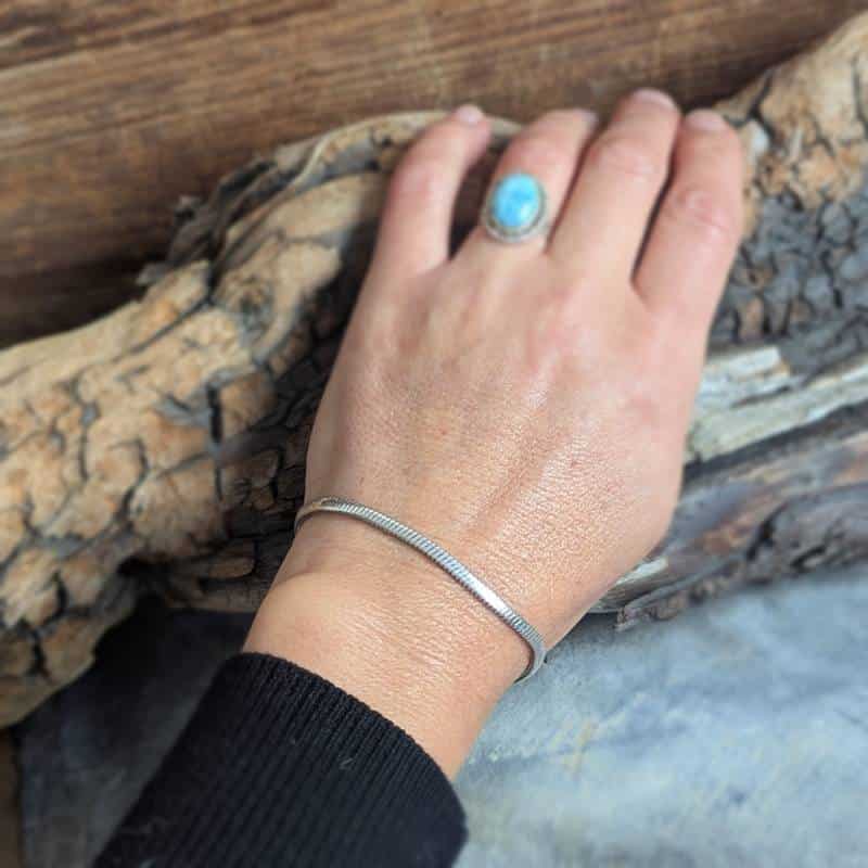 Le bracelet maille serpent argent indien est un bijou intemporel. Ce modèle est composé d’une maille plate épaisse, à la fois dense et fine. Celà lui apporte souplesse et solidité. Doux au touché, ce bracelet se porte facilement et ne s’accroche pas. Ce bijou se porte au masculin comme au féminin.