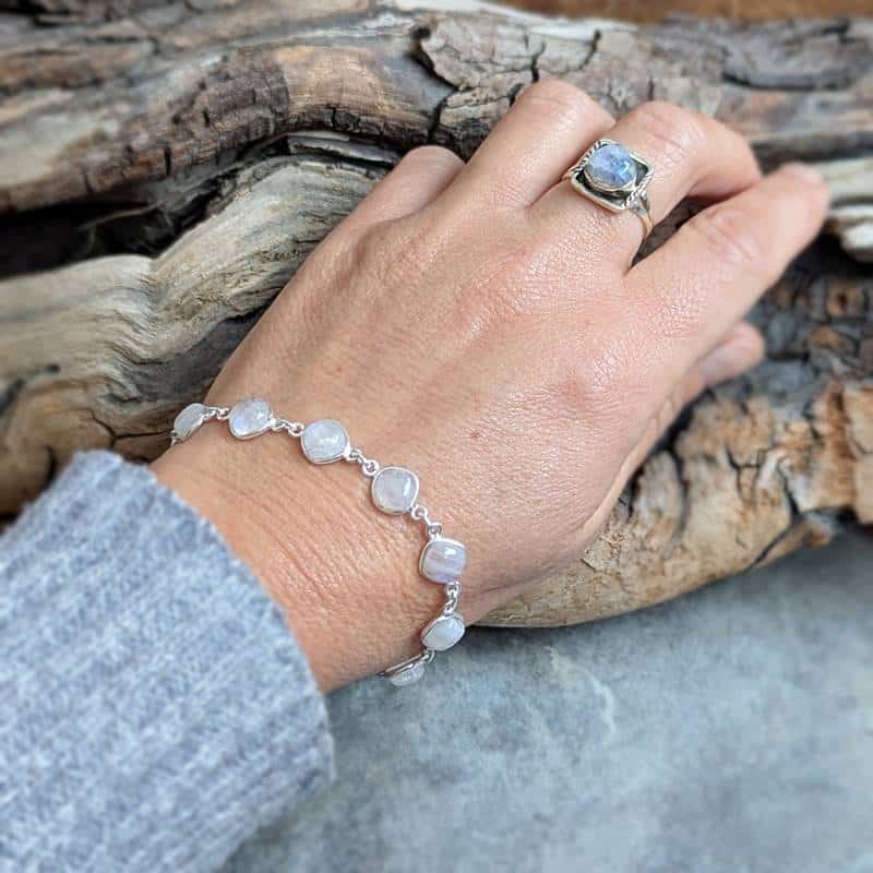 Bracelet pierre de lune argent ajustable