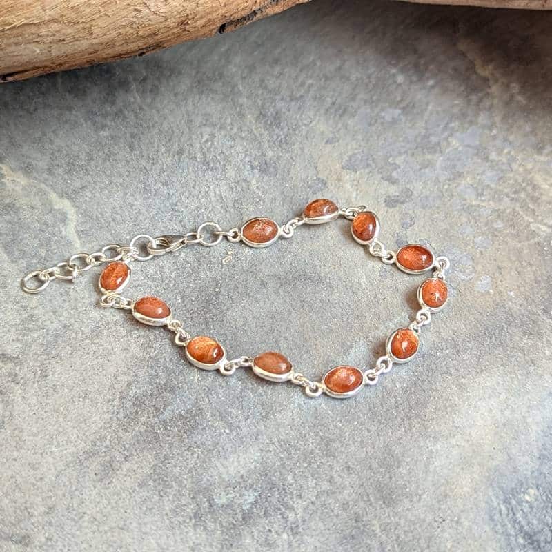 Le bracelet pierre de soleil en argent est bijou artisanal, très original. La pierre de soleil est une pierre qui sort de l’ordinaire, et qui rayonne de mille paillettes. Ce bracelet boostera votre énergie vitale et donnera du peps à votre look.