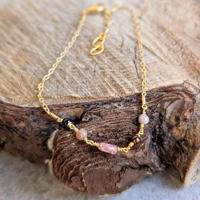 Le bracelet tourmaline doré AJMER est une création fine exquise. Un bijou intemporel composé de 5 petites tourmalines multicolores roulées. Ce bracelet chainette est ajustable, et se porte court ou plutôt tombant sur le poignet. Pour de jolies finitions, la chainette se termine par une partie ajustable dans une maille mousqueton.