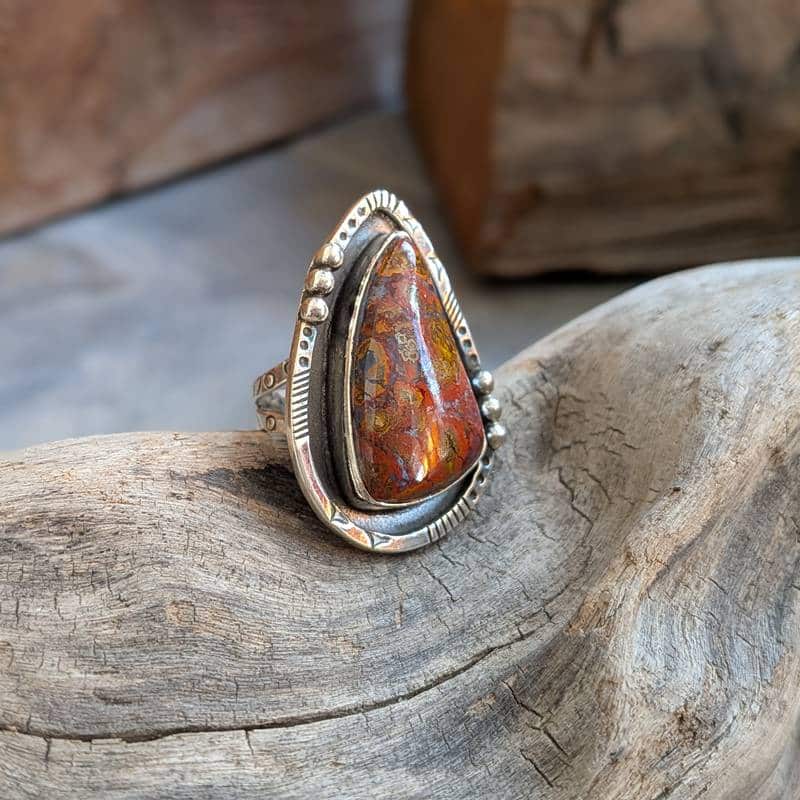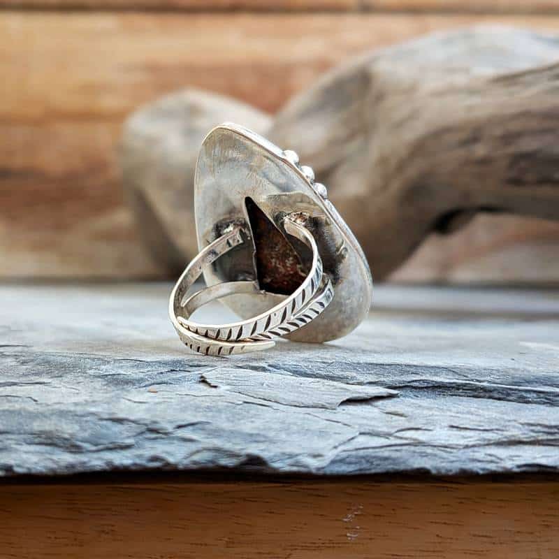Argent 925, le matériau de la grosse bague ethnique en jaspe rouge argent