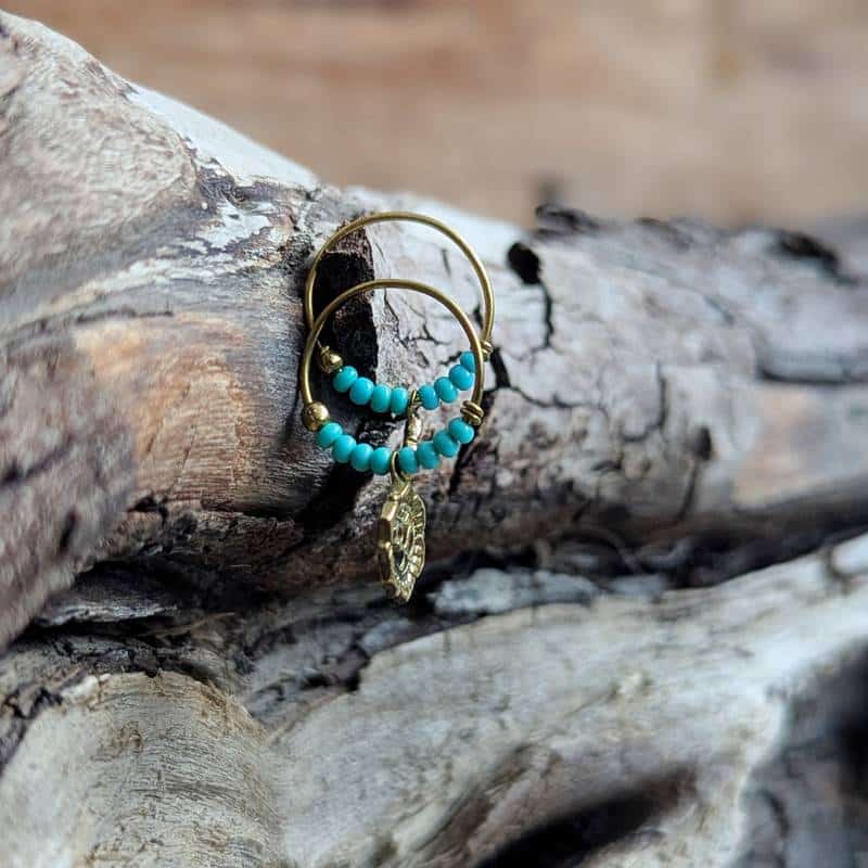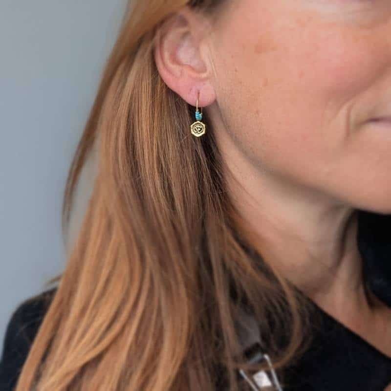 Les mini créoles dorées turquoise Om sont porteuse de sens. En effet, le petit pendant symbolise l’origine de toute chose tant pour les bouddhistes que pour les hindouistes. Ces boucles très fines et légères se portent facilement. Discrètes, elle seront un clin d’œil subtil à votre sensibilité.