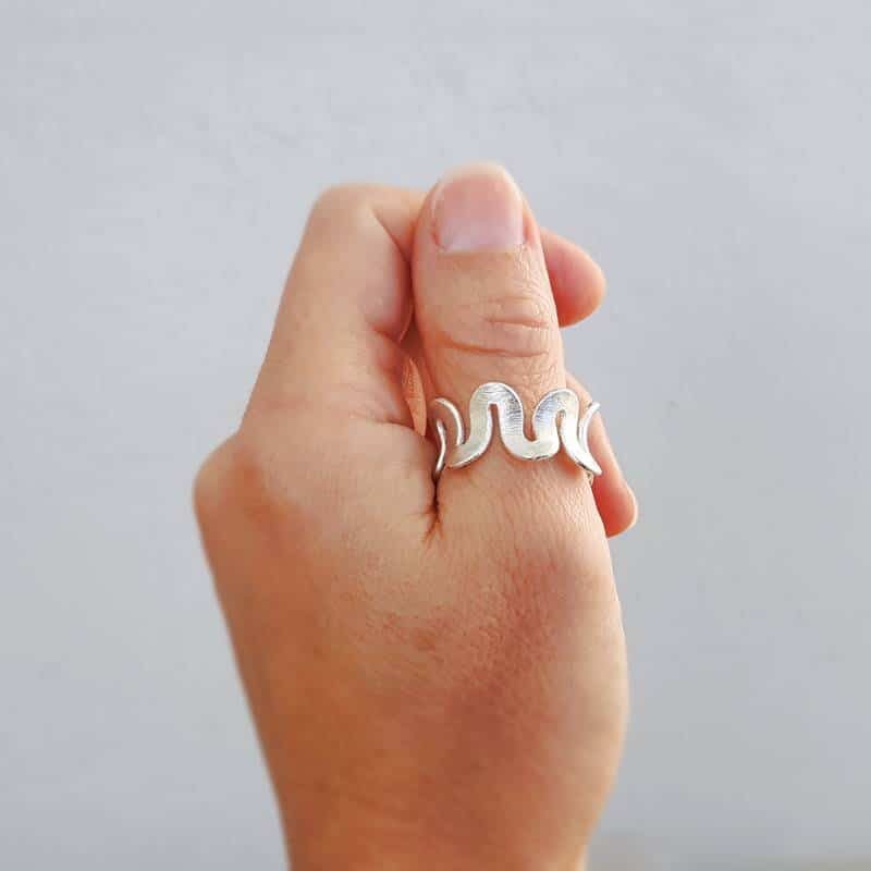 El anillo de plata martillada ONDULATION es una magnífica creación, totalmente hecha a mano. El interior del anillo ha sido finamente pulido y lo hace muy suave de llevar. Su estilo chic y refinado va bien con outfits boho-chic.
